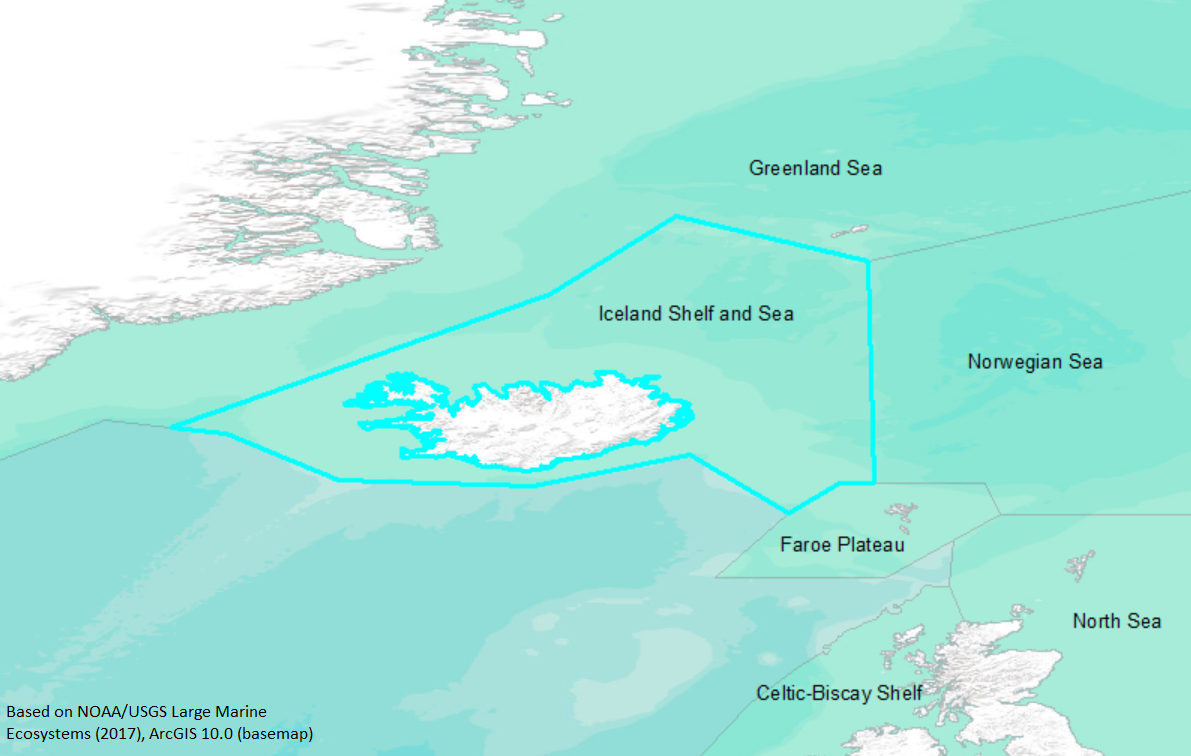 LME SAU No 59. North Atlantic, shelf around Iceland. Overlaps with Denmark strait (137). LME2002, Modified LME 2006, SAU 2008. |