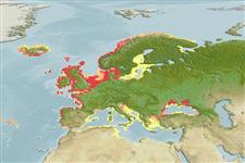 Benthic; brackish; depth range 0 - 50 m (Ref. 434). Subtropical, preferred 11°C (Ref. 107945); 74°N - 23°N, 16°W - 44°W