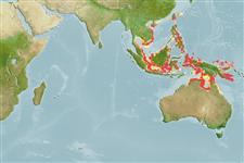 Reef-associated; depth range 0 - 40 m (Ref. 848).  Tropical; 30°N - 26°S, 95°E - 154°E (Ref. 848)