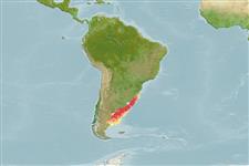 Benthic; brackish; depth range 36 - 64 m (Ref. 111861), usually 36 - 58 m (Ref. 111862).  Tropical, preferred 14°C (Ref. 107945); 31°S - 50°S, 69°W - 50°W (Ref. 85437)